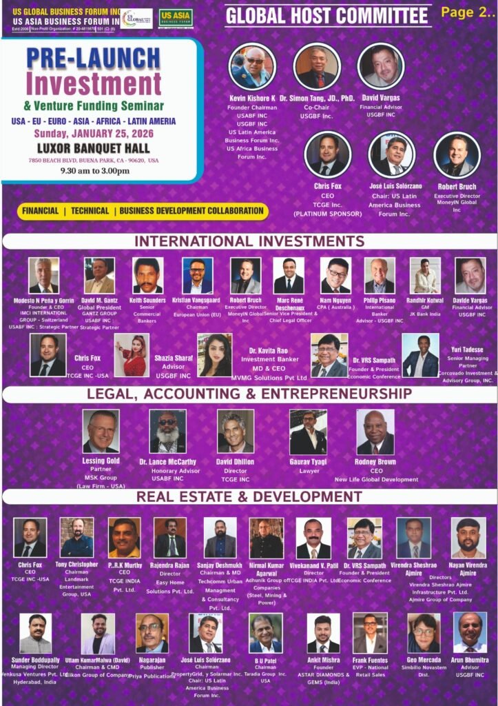 Seminar on Investment y Venture funding . Saturday, January 25, 2026 24th Annual USA - EU - EURO - ASIA - AFRICA - LATIN AMERICA